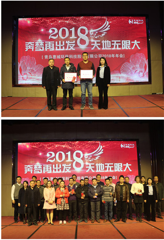 2月9日,青島惠城環(huán)??萍脊煞萦邢薰?018年度主題為“奔?jí)粼俪霭l(fā) 天地?zé)o限大”的總結(jié)表彰暨新春聯(lián)歡會(huì)在青島康大豪生大酒店隆重召開(kāi)。