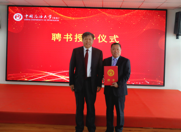 隨后,郝芳校長代表中國石油大學(華東)向我司董事長張新功頒發兼職教授聘任證書。