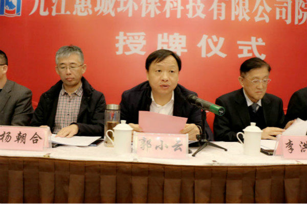 活動伊始,瑞昌市委書記郭小云代表瑞昌市委、市政府向蒞臨此次授牌儀式的各位領導和專家表示歡迎,他提出,希望九江惠城環保科技有限公司能借助院士工作站這一創新平臺,不斷提高科研能力和創新水平,著力把企業做大、做優、做強。瑞昌市委、市政府也會積極為企業、為院士工作站開展工作提供優質服務、創造良好條件、營造更好環境。