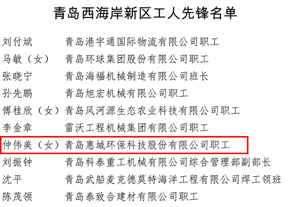 為大力弘揚勞模精神、勞動精神、工匠精神,激勵全區廣大職工愛崗敬業,爭創一流,日前,青島西海岸新區總工會發起了新區工人先鋒(號)的推薦評選工作。經過考察評比,我公司銷售團隊和仲偉美個人喜獲 “工人先鋒號”和“工人先鋒”榮譽稱號。