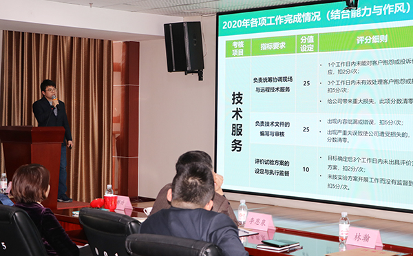 會上,公司35位中高層經營管理干部對自己一年來的履職情況和重點工作做了系統總結,對工作中存在的問題和不足展開了深刻剖析,并對2021年度工作思路和重點工作科學規劃。臺下人員認真聆聽,并依據考核方案,對述職干部客觀公正地打分評價。