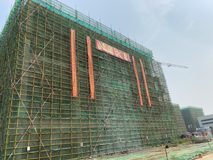9時58分,封頂吉時,禮炮齊鳴。在場所有人都滿懷激動的心情鼓起掌來,聳立的廠房被一條條紅色祝福標語裝點得格外喜慶。