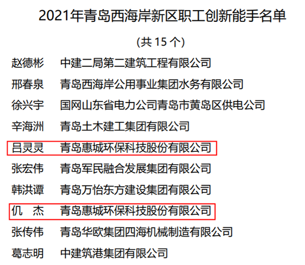 近日,青島西海岸新區(qū)總工會(huì)發(fā)布通知,公布“2021年度青島西海岸新區(qū)創(chuàng)新型班組、職工創(chuàng)新能手、職工創(chuàng)新成果”評(píng)選情況,公司工程技術(shù)研究中心榮獲新區(qū)創(chuàng)新型班組殊榮,該部門(mén)副主任呂靈靈、副主任工程師仉杰當(dāng)選新區(qū)職工創(chuàng)新能手。