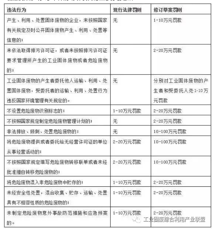 《固廢法》修訂草案涉及罰款的主要變更點(diǎn):