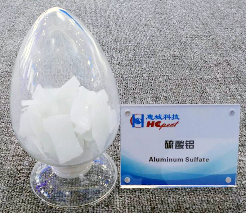 硫酸鋁產(chǎn)品為灰白色片狀、粒狀或塊狀。不易風(fēng)化而失去結(jié)晶水,比較穩(wěn)定,加熱會(huì)失水,高溫會(huì)分解為氧化鋁和硫的氧化物。加熱至770℃開始分解為氧化鋁、三氧化硫、二氧化硫和水蒸氣。溶于水、酸和堿,不溶于乙醇。水溶液呈酸性。水解后生成氫氧化鋁。